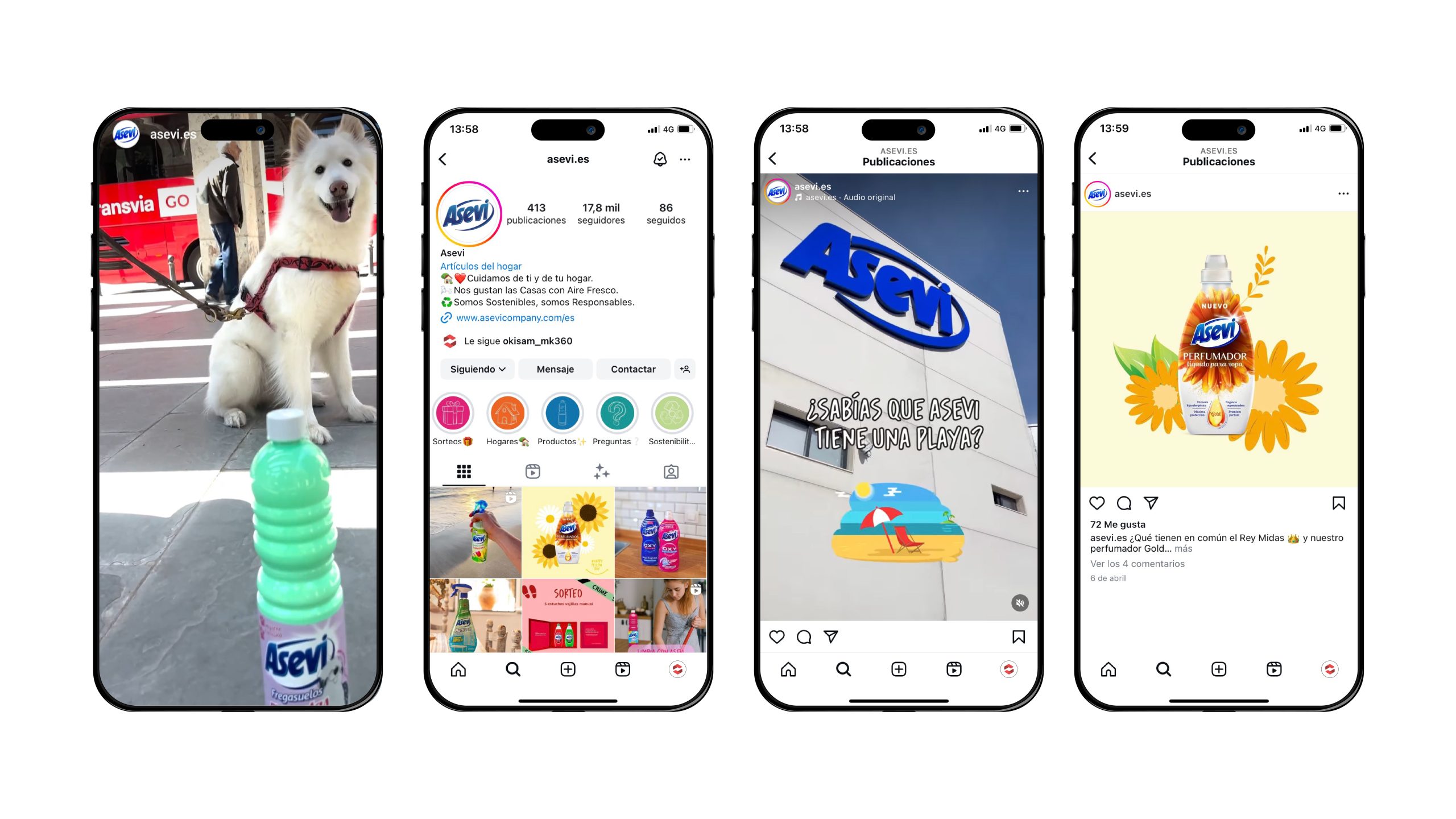 - Aumento de publicaciones y Reels: Lo mismo que tú a veces echas un cacito más de detergente a la lavadora (eso es porque no usas Asevi, ya te lo decimos nosotros) del que marcan las instrucciones, nosotros decidimos hacer lo propio con las publicaciones. Si pensabas que una navaja suiza tiene muchos usos, no has visto todos los que tienen sus productos.